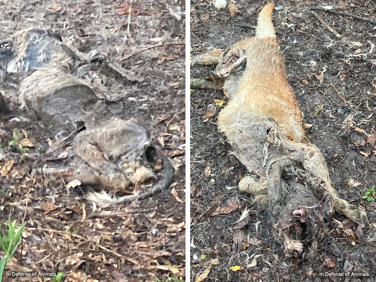 Doll Stanley went with C.M.’s daughter-in-law on the following Tuesday to try to locate the dogs. There had been lots of rain recently, making searching the woods thoroughly difficult. The body of the tan and white dog who had still been alive on Thursday was located because buzzards were circling there as well.